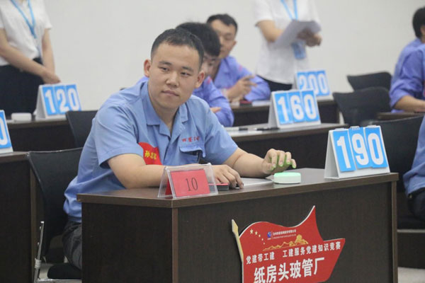 四星公司黨支部書記、董事長王煥一在活動祝詞中指出,通過競賽把參賽隊員的工匠風范發(fā)揮出來,把參賽隊員的愛黨愛崗敬業(yè)精神展現(xiàn)出來,同時要求將繼續(xù)做實黨建帶工建工作機制,充分發(fā)揮企業(yè)主體作用,讓廣大產(chǎn)業(yè)工人唱主角,積極投身改革,為企業(yè)高質(zhì)量發(fā)展添磚加瓦,從而實現(xiàn)企業(yè)發(fā)展與員工成長的同頻共振。 本次知識競賽共有6支代表隊參加,分別為公司科室代表隊、玻瓶一廠代表隊、玻瓶二廠代表隊、紙房頭廠區(qū)玻管廠代表隊、光熱廠區(qū)玻管廠代表隊、光熱廠區(qū)玻瓶廠代表隊,每支代表隊由3名成員組成。競賽分為個人必答題、搶答題、風險題和觀眾互動題4種題型,各隊參賽選手應按照不同題型要求答題。比賽中,各代表隊選手相互配合,搶答積極,回答精準,現(xiàn)場氣氛緊張熱烈。